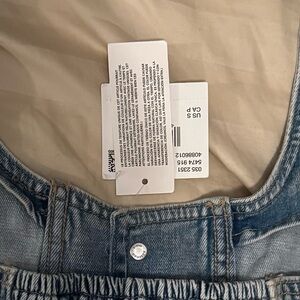 Stylish denim halter top featuring button details. Perfect for casual outings.