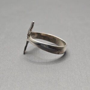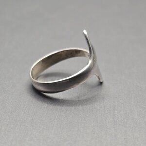 This vintage sterling silver ring features a graceful whale tail design — a quiet nod to the sea and its mysteries. The tail curves gently across the finger, polished yet softened by a naturally darker silver tone that adds depth and character. Marked 925 and weighing 2.91g, it’s a lightweight, comfortable piece with a 3.8mm band and a size 8 fit.