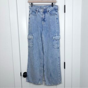 Old Navy Sky Hi High Rise Wide Leg Cargo Pocket Denim Jeans Womens Size 2