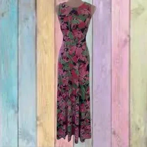 Taylor Navy Blue Pink Floral Sleeveless Maxi Dress