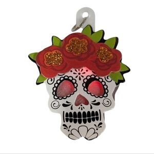 Sugar skull earrings with red LED light up eyes. Switch on the back of the earrings turns light on and off. Lightweight 3D printed plastic, unique handmade earrings. Need earring hooks. Like new, never worn.