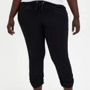 TORRID BLACK STRETCH POPLIN RUCHED CROP PANTS CASUAL ATHLETIC SIZE 10