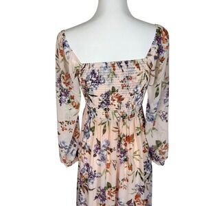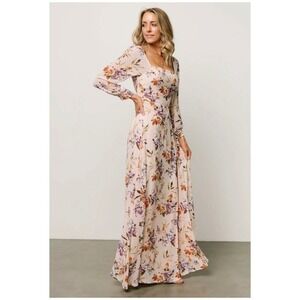 Baltic Born Giselle Maxi Dress Blush Floral Square Neck Long Sleeve Size S NWT