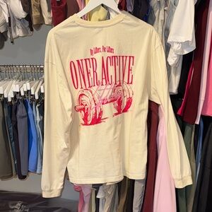Stylish long sleeve top by Oner Active. Cream base with bold pink accents. Ideal for casual wear.