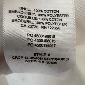 Content: 100% cotton; Embroidery: 100% polyester
