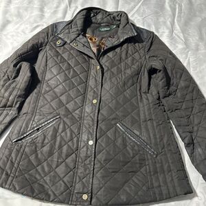 Ralph Lauren Black Quilted Jacket Gold Snaps Size S