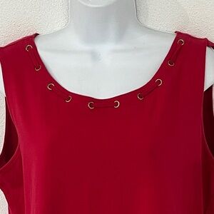 Preloved tank in good condition. Pit to pit measures 21”. The last pic is a better color match. It’s a fire engine red but not so bright as it has been preloved. Non smoker home.