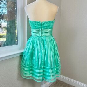 Vintage Betsey Johnson Silk Strapless Mini Dress 6 Green Silk Party Cocktail Y2K