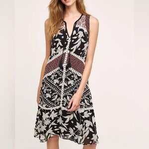 Anthropologie Floreat Grasslands Midi Dress Boho Embroidered Floral Size 2