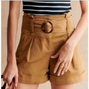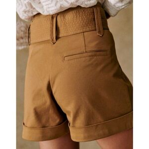 Sezane Rome High Waist Shorts 2 Caramel Brown