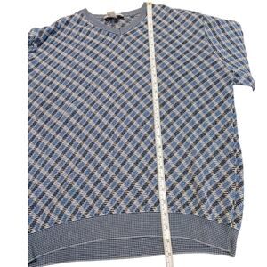 Ermenegildo Zegna V Neck Pullover Sweater Geo Plaid Blue Knit Italy Made Mens XL