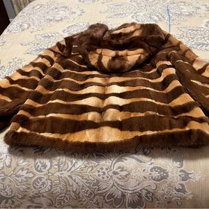 Brown and Tan sheared genuine mink fur jacket