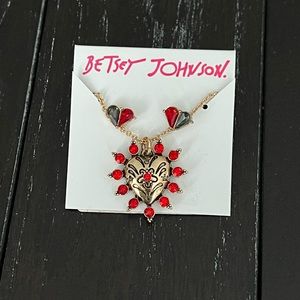 Beautiful Betsey Johnson Jew set, post earrings and necklace, gold tone, heart shaped, new with tag.