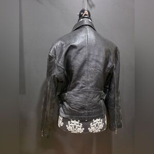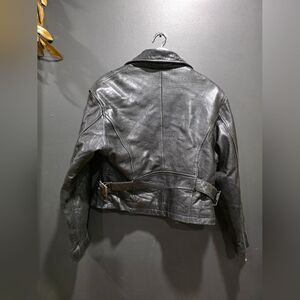 Authentic Vintage Real Leather Moto Jacket Buckle Side Sz S Flawed Crop