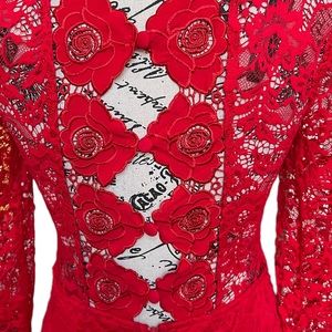 Gorgeous Bisou Bisou dress, red lace overlay lined, stretchy fabric, gorgeous lace button closure back, zipper closure, light padding, new with tag.