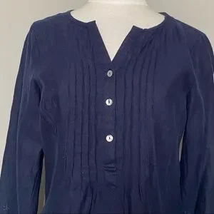 Popover 1/4 button down neckline with pintuck & mother of pearl buttons