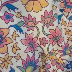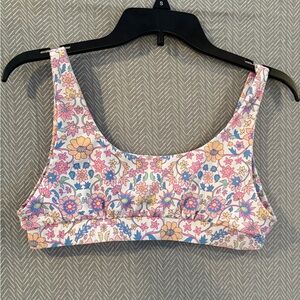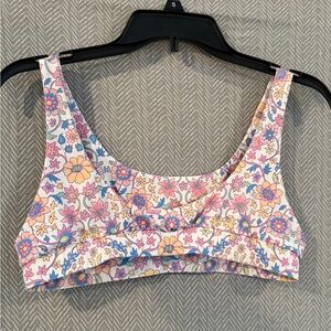 Charming floral print bikini crop top with pink, yellow, and blue flowers.