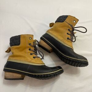 Sorel Slimpack Lace II Duck Boots Womens 9.5 9 1/2 NL2348-286 Elk Black