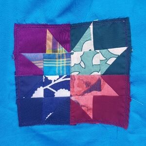 Featuring a unique scrappy patchwork piece.