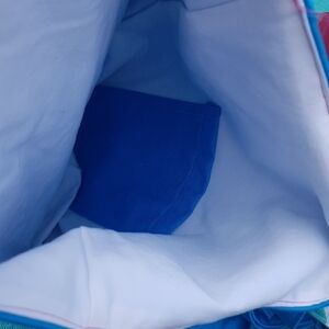 Only 5 available in brilliant sky blue. Fully lined with an inner pocket.