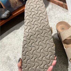 Birkenstock Beige Slide Sandals with Silver Buckles worn once
