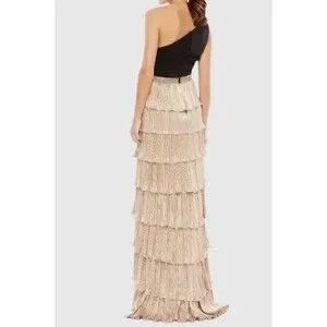 Mac Duggal Dress 26541 Womens 4 One Shoulder Black Gold Layered Ruffle Gown.