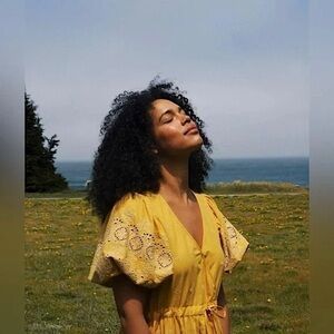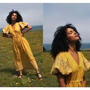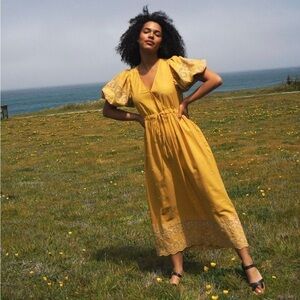 NWT CHRISTY DAWN Puffed Short Sleeve Embroidered Tie Waist V-Neck Maxi Dress S