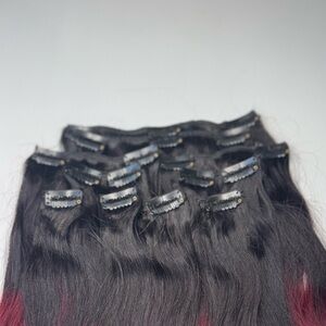 Enhance your look with these stunning ombre black and red hair extensions. Perfect for adding volume and length.