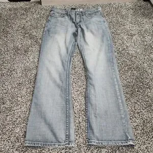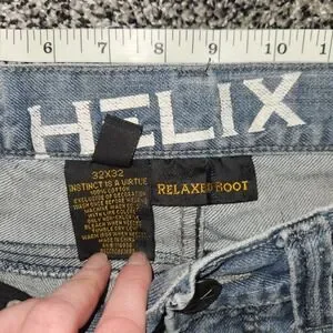 Y2k Helix Jeans Mens 32x32 Blue Relaxed Boot Faded Whisker Grunge Skater Punk
