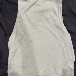 Chic ribbed tank top in sage green. Ideal for casual wear.