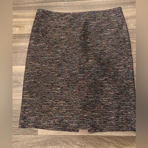 Tahari pencil skirt. Size: 12. Small slit on back. Metallic thread throughout.