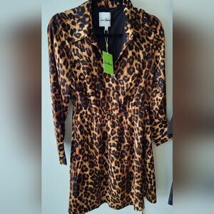 Satin Collar Neckline Long Sleeve Leopard Mini Shirt Dress