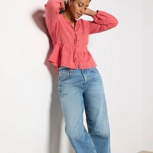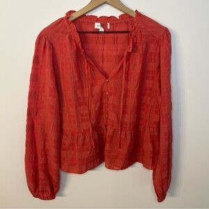 *NWOT* Evereve Peplum Crinkle Blouse in Mineral Red, Size Large