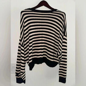 Pink Victorias Secret Stripped Crew Neck Sweater in Black and Cream Sz XL