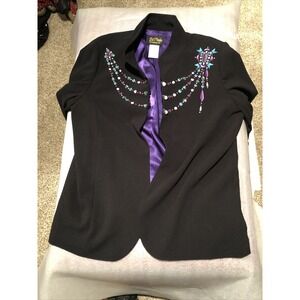 Bob Mackie Wearable Art Jacket Party Coat Festive Size Large Black Purple Beads