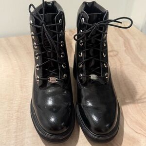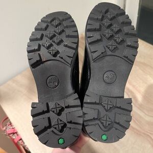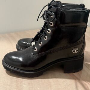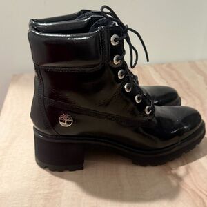 Glossy black finish. Sturdy lace-up design. Iconic Timberland logo detail.