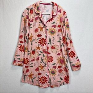 Spartina 449 Sleep Shirt Botanic Garden Peach Long Sleeve Size M Button Up