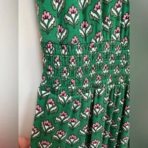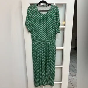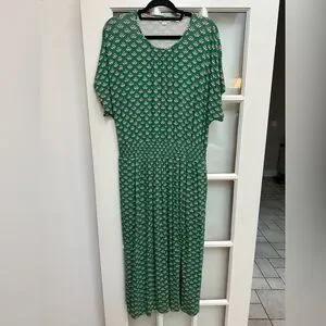 Boden Women's Chic Preppy Green Jersey Midi Stretch Dress Highland Geo Size 14