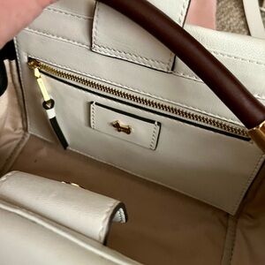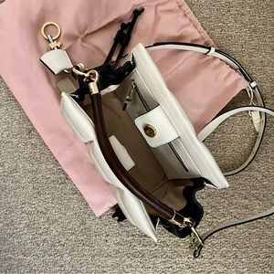 Reposhing this item I purchased from @manongreer. Loved it, but ready to rotate for something new. Radley London Hyde Road quilted ivory soft nappa leather with black leather sides and bottom and a brown leather tubular handle with metal caps and an adjustable and removable shoulder strap. In very good condition, used once, minimal wear as shown. Outer Material: Leather; Lining: Polyester. Comes with dust bag.
