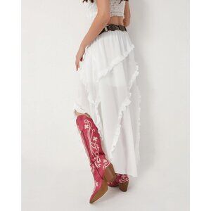 Chic Western Style: These knee-high boots feature intricate floral embroidery and graceful curves, blending vintage cowgirl charm with modern flair.