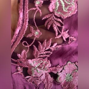Vintage Burgundy Mulberry Silk Embroidery Fairy Y2K Robe M/L No size tag check measurements carefully 44in long) unique and rare piece perfect condition (1)