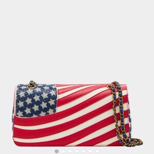 BETSY JOHNSON Freedom Crossbody Rhinestone Patriotic Red White Blue Bag USA FLAG