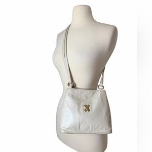 VINTAGE PALOMA PICASSO WHITE IRIDESCENT CROSSBODY LEATHER BAG.