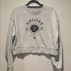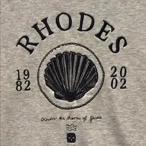 Style: Graphic Boxy Crew Sweashirt, Logo says Rhodes, Discover the charm of Greence