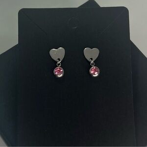 Elegant heart drop earrings featuring a stunning pink gemstone. Perfect for adding a touch of charm to any outfit❣️