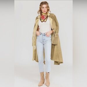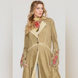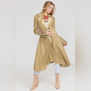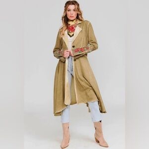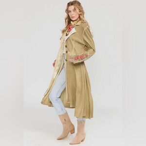 Aratta Floral Embroidered Trench Coat in Tan