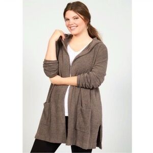 BAREFOOT DREAMS Cozy Chic Lite Brown Hooded Cardigan