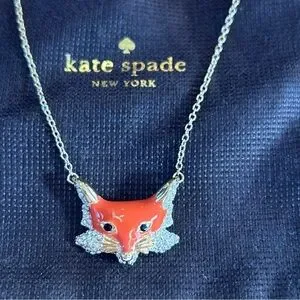 NEW KATE SPADE 12K Gold-Plated ‘Into The Woods’ Fox Pendant Necklace w/ KS Bag