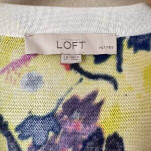 LOFT Womens Floral Cotton Sweater Cardigan V Neck Yellow Pink Petite Size LP