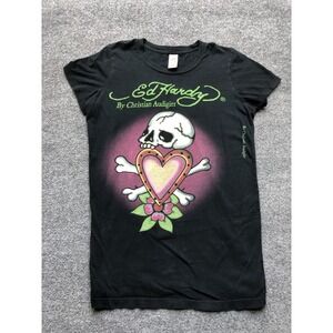 Ed Hardy Shirt Womens 0X Black Skull Heart Tattoo Graphic Tee Plus Christian